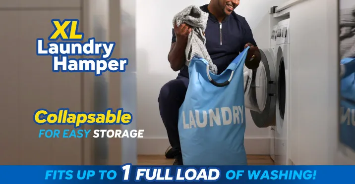 - Collapsible laundry bag – Lightweight canvas design that folds flat for storage and expands to hold a full load of washing