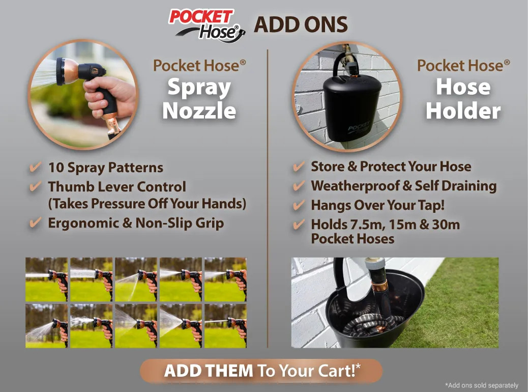 - Pocket Hose Copper Bullet Add On Accessories are also available**