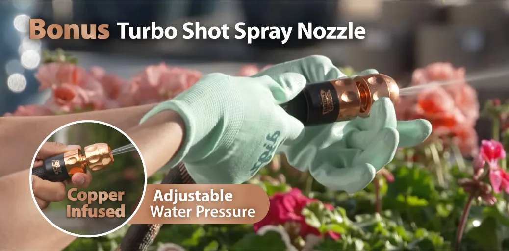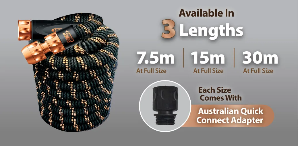 Pocket Hose® Copper Bullet is available in 3 lengths – 7.5m, 15m and 30m. Each Pocket Hose® Copper Bullet purchase includes a BONUS Turbo Shot Adjustable Spray Nozzle.