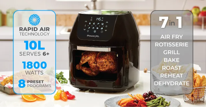The PowerXL Air Fryer Oven has a large 10L capacity – big enough to feed an entire family!