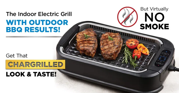 The PowerXL Smokeless Grill is an electric grill, designed to cook chargrilled meals indoors, all year round, in any weather! It’s ideal for apartments, caravans, and boats too!